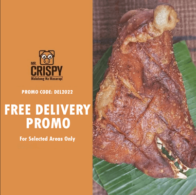 PROMOS buy 1, take 1 view info It’s our grand opening day and we want to extend our warm celebration to your home.You are part of our family so here’s our Buy 1 take 1 Crispy Pata just for you which you can avail on our Grand Opening day.Can’t wait to celebrate with you on October 18! view info FREE SPECIAL CHICHARON view info We love spoling you!So here’s a crispy treat for you.Get 1 pack of Special Chicharon when you purchase Mr. Crispy products worth P1000. view info FREE DELIVERY view info Avail of free delivery services for areas within the vicinity (Projects 2, 3 and 4, Sikatuna Village, Teacher’s Village, UP Village, Krus Na Ligas, Central, Pinyahan, East Kamias, Silangan, Xavierville). view info