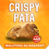 Previous Product Next Product Crispy Pata – Large ₱699.00 Crispy Pata - Large quantity Add to cart Category: Uncategorized Reviews (0) Reviews There are no reviews yet. Be the first to review “Crispy Pata – Large” Cancel replyYour email address will not be published. Required fields are marked *Your rating * Rate… Perfect Good Average Not that bad Very poor Your review *Name * Email * Save my name, email, and website in this browser for the next time I comment. Related products Quick View Quick View UncategorizedCrispy Ulo Extra Large ₱1,199.00 Add to cart UncategorizedCrispy Manok Regular ₱299.00 Add to cart Quick View Quick View UncategorizedSpecial Butcheron ₱199.00 Add to cart